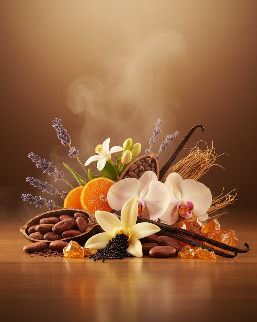 وفي القاعدة تتألق فانيليا مدغشقر والتونكا ونجيل الهند والعنبر لتمنحك ثباتًا أنثويًا لا يُنسى.